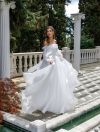 Draped top wedding dress with removable puff sleeves
