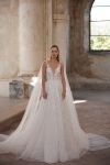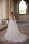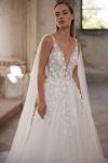 A-line with detachable wings. Lace decorated top wedding dress and second layer of skirt is made of magnified lace florals.