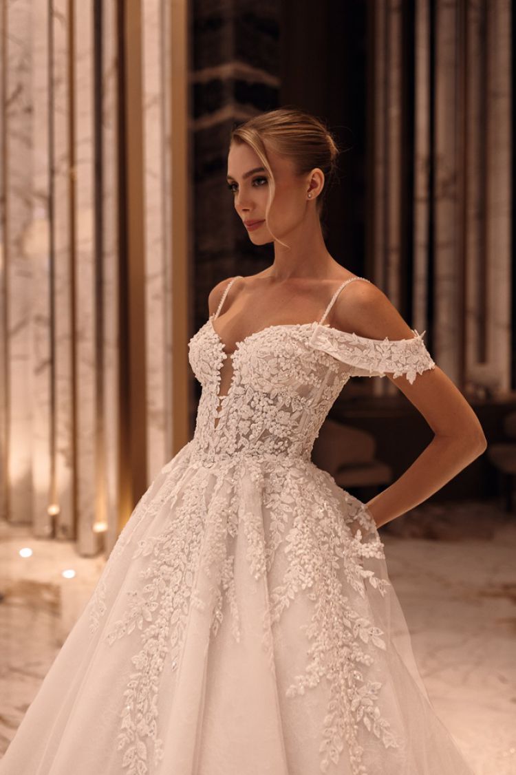 Princess style wedding dress, a perfect luxury ballgown, decorated with swarovsky crystals.