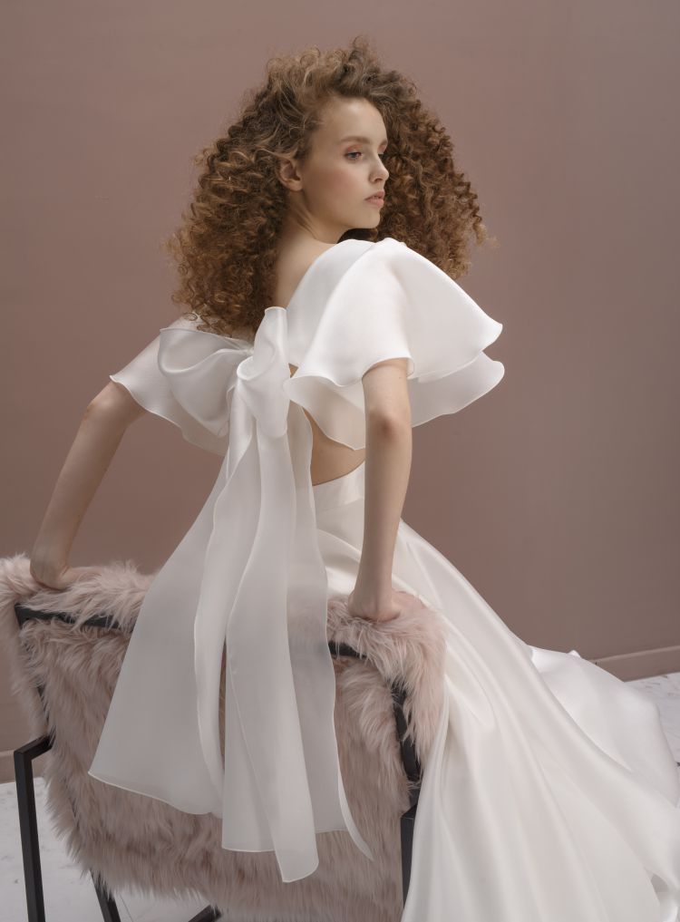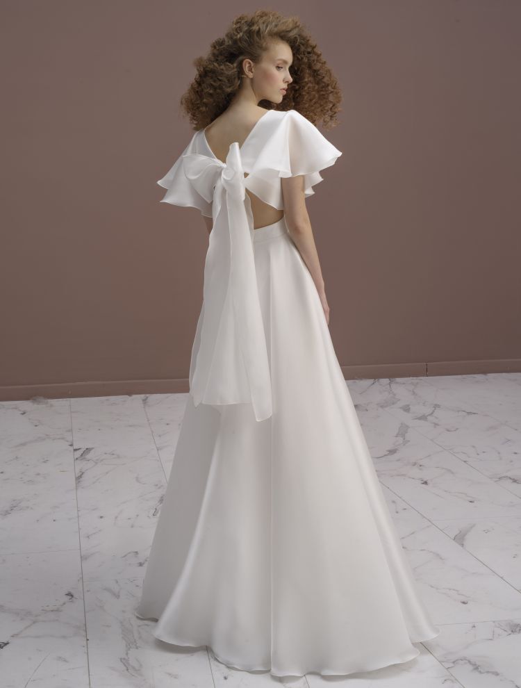 Elegant organza style wedding dress with designer back.