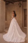 Luxury A-line wedding dress decorated with 3D flowers unique lace, open sides and off-shoulder straps.