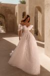 Unique design, A-line tulle wedding dress, skirt with front slit.