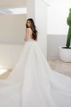 Luxurious ballgown wedding dress with cascading beadwork along the structured bodice and wide straps.